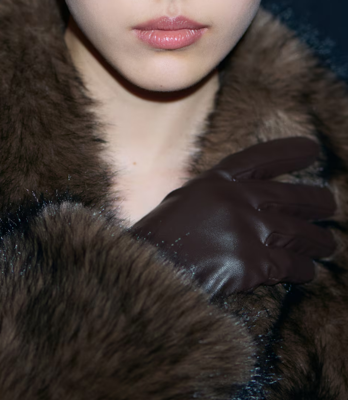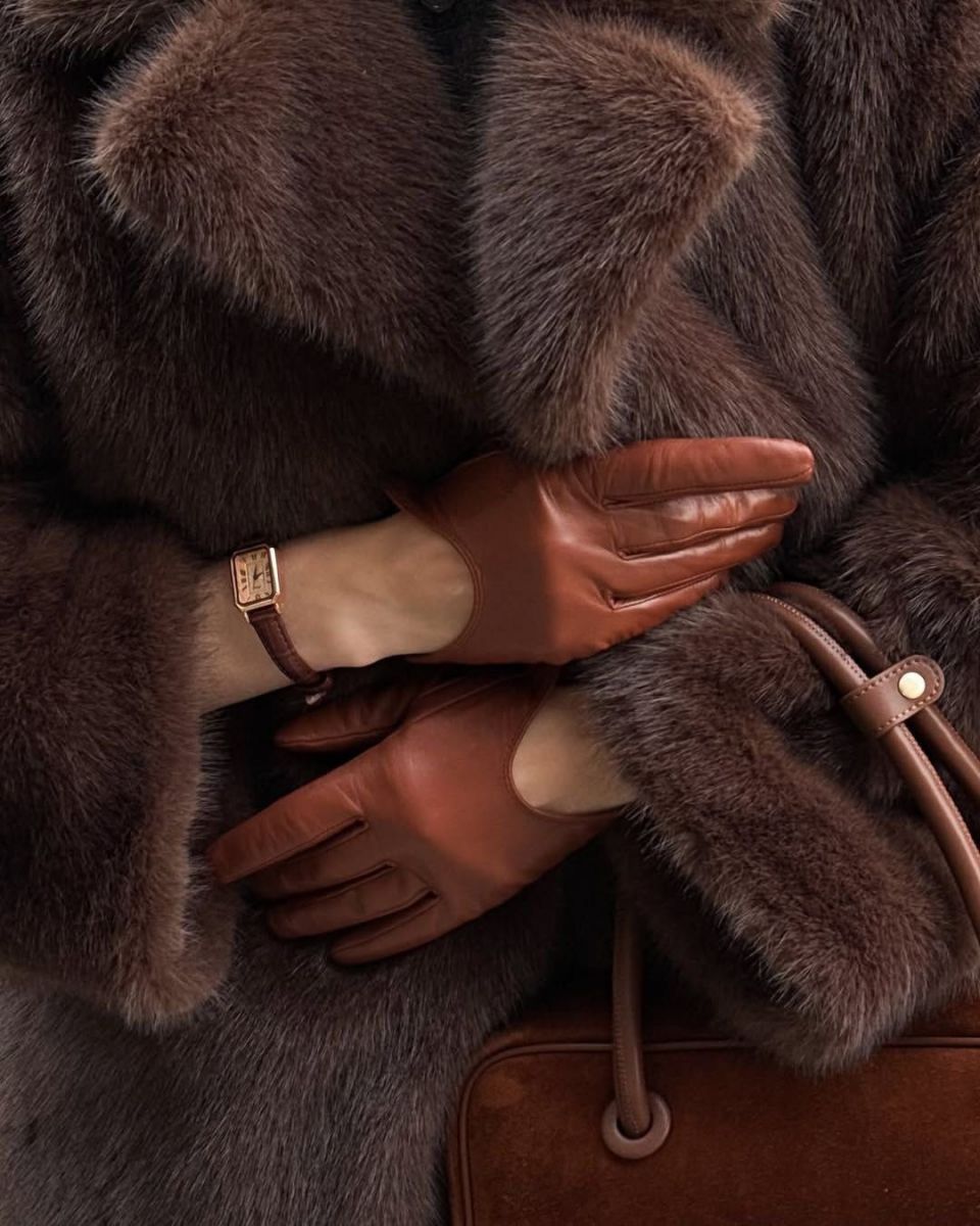 Kožne rukavice daju strukturu i oštrinu mekim zimskim materijalima (poput vunenog kaputa), stvarajući kontrast tekstura koji je ključan za lukuzan izgled.