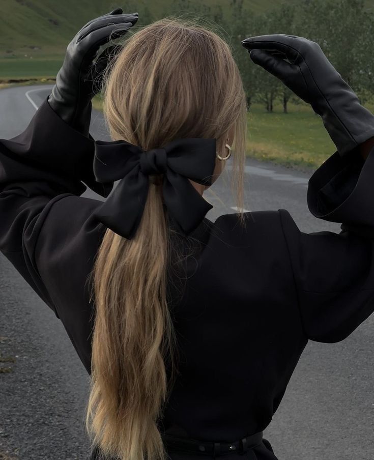 Trik: Kupite jednostavnu baršunastu traku za kosu ili veliku mašnu u tamnim, zagasitim bojama (crna, tamno zelena, bordo, teget).